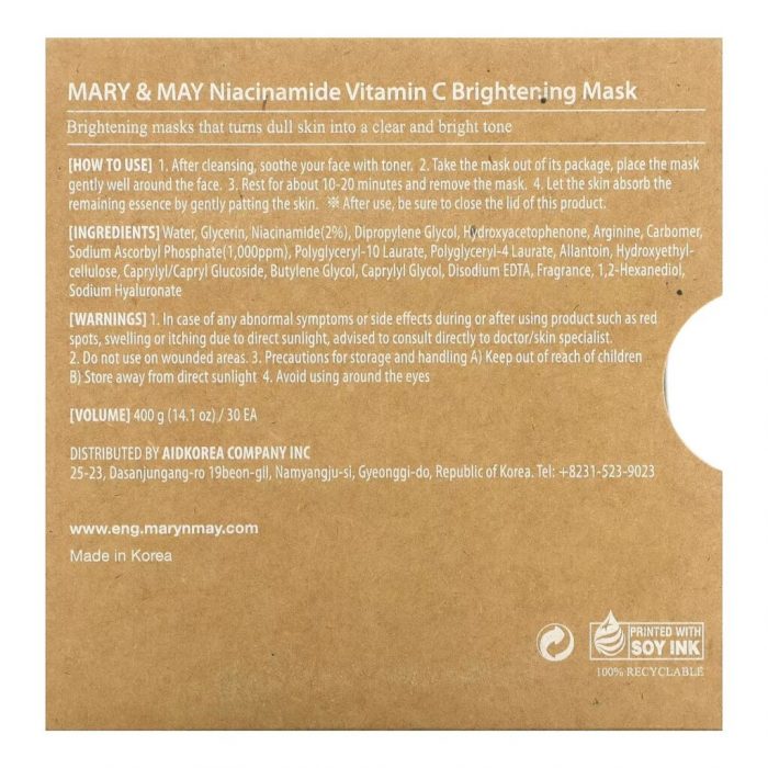 Mary&May – Niacinamide Vitamin C Brightening Mask 30pcs