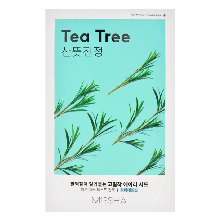 MISSHA – Airy Fit Sheet Mask Tea Tree est un masque coréen imbibé d’extrait de tea tree, reconnu pour ses vertus purifiantes et apaisantes. Sa texture légère adhère parfaitement à la peau pour un soin rafraîchissant et efficace.